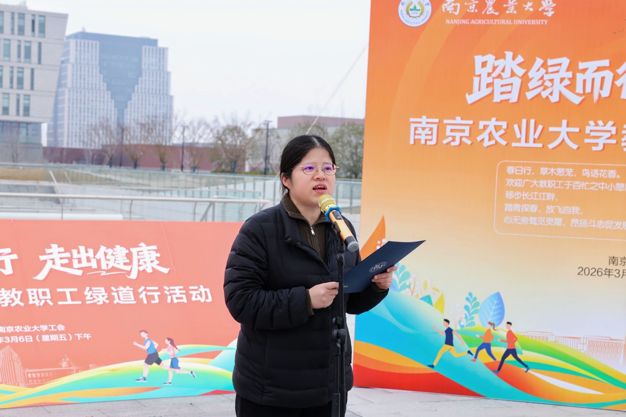 春和景明,万物勃发。3月6日下午,南京农业大学2026年庆祝“三八”国际劳动妇女节暨“踏绿而行,走出健康”绿道行活动在滨江、卫岗两校区同步举行。副校长冯淑怡出席滨江校区出发仪式并致辞。全校近千名教职工一同踏青而行,以脚步丈量春色,用运动收获健康。