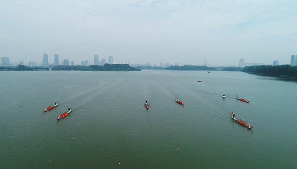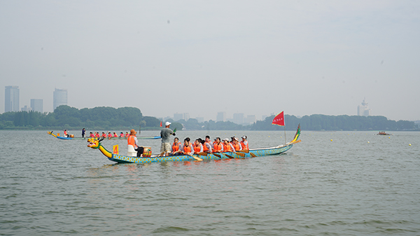 比赛分两组进行。十一支代表队参赛队员们奋力划桨、斗志昂扬,在玄武湖面展开了竞逐。湖面上,龙舟你追我赶、全速前行,鼓声、口号声、加油欢呼声此起彼伏、不绝于耳。经过激烈角逐,最终体育部、农学院、图书馆获得本次龙舟比赛前三名。