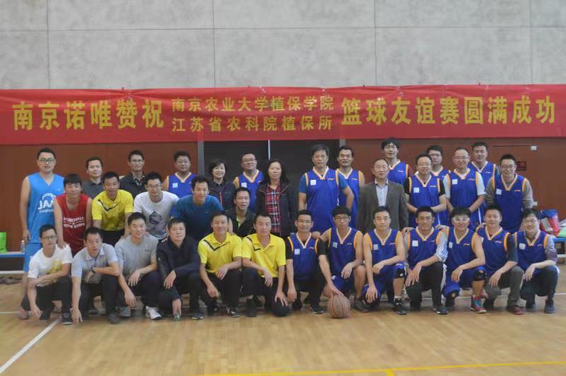 2018年10月18日下午四点,南京农业大学植物保护学院教工男篮在校体育馆与江苏省农科院植保所篮球队展开了一场篮球友谊赛。