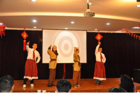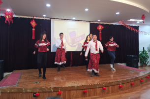 18点30分,晚会在开场舞《燃烧我的卡路里》中拉开帷幕,热烈喜庆的氛围立刻让现场年味十足、暖意融融。整场晚会汇聚了众多精彩卓绝的教职工演出,古典韵律与流行劲曲相得益彰,交相辉映,用歌曲、舞蹈、器乐演奏等丰富的艺术形式为观众带来了一场视听享受,表现了食品科技学院教职工蓬勃向上的精神风貌和缤纷多彩的校园文化生活。《我和我的祖国》采用合唱+二胡演奏的形式,表达了全院对祖国的热爱之情;《三句半》用风趣幽默的语言演绎了教职工教学与科研工作的辛苦与自豪;舞蹈《失恋阵线联盟》用轻快的舞步拨动观众的心弦;《歌曲串烧》赢得在场观众的阵阵掌声;《趣味小人舞》洋溢着行政人员青春的气息,给大家带来美感与快乐融合的视觉盛宴;诗朗诵《读中国》表达了教职工对祖国的美好祝愿。