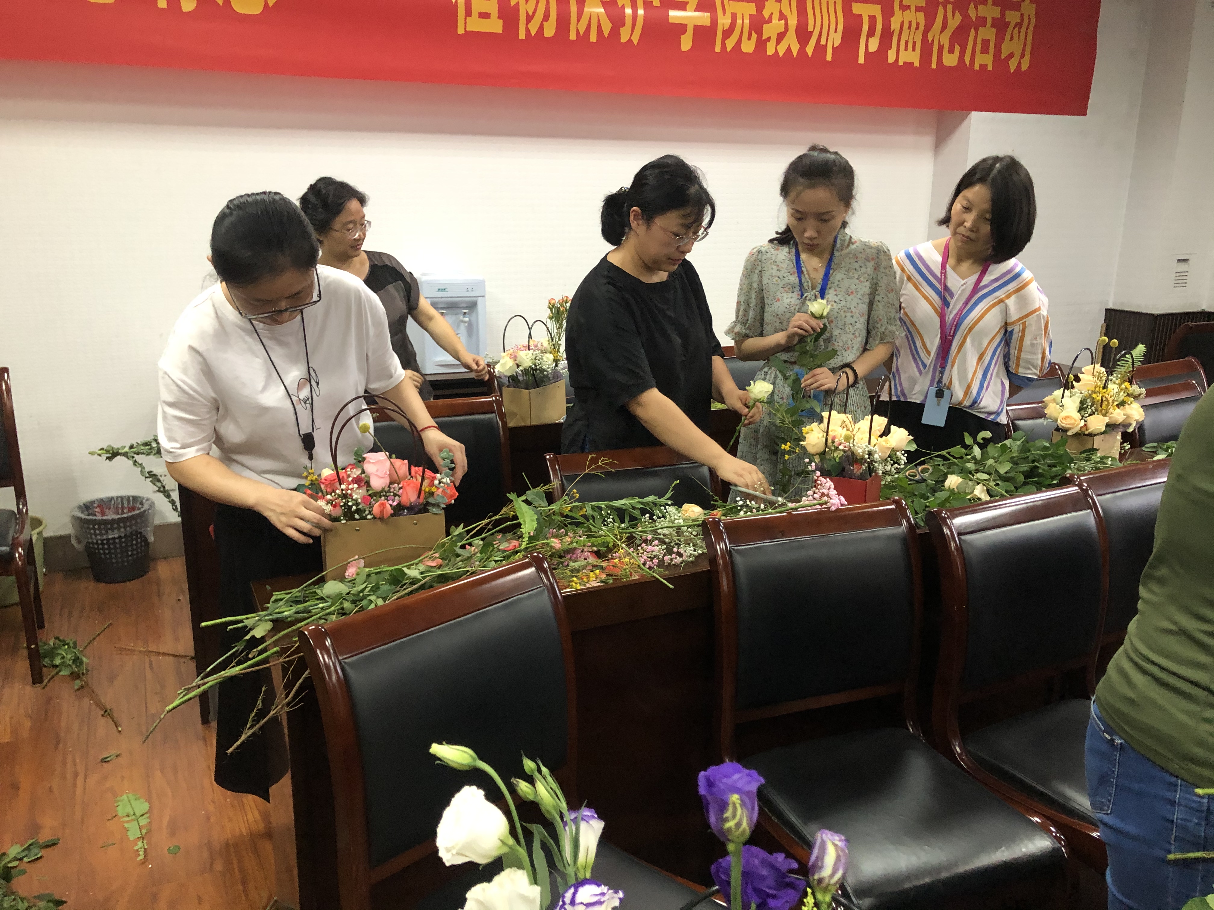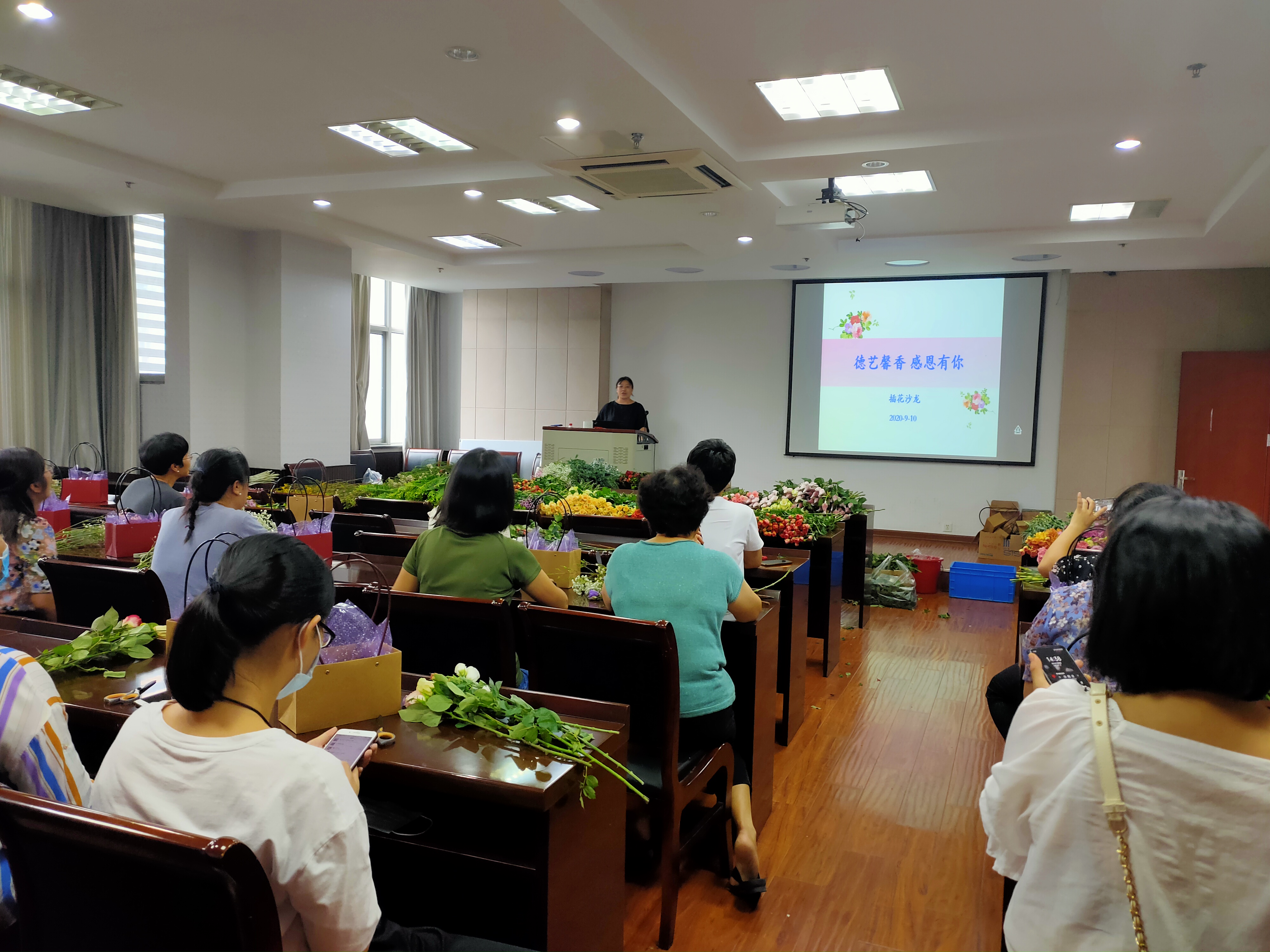 愉快的时光总是匆匆,插花活动在大家满足的喜悦声中圆满结束。本次活动丰富了老师们的精神文化生活,更为忙碌工作的老师们带来了愉悦,也是教师节给老师的一份特殊礼物!。