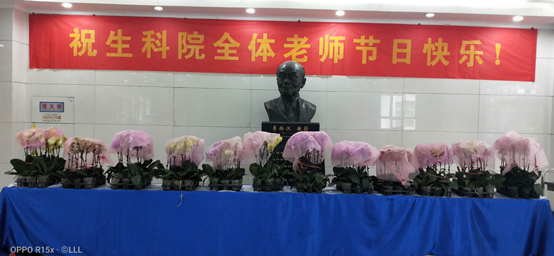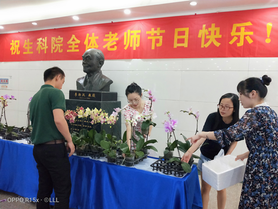为庆祝第36个教师节,生科院工会于9月10日上午,在生科楼一楼大厅举办的教师节赠花活动。