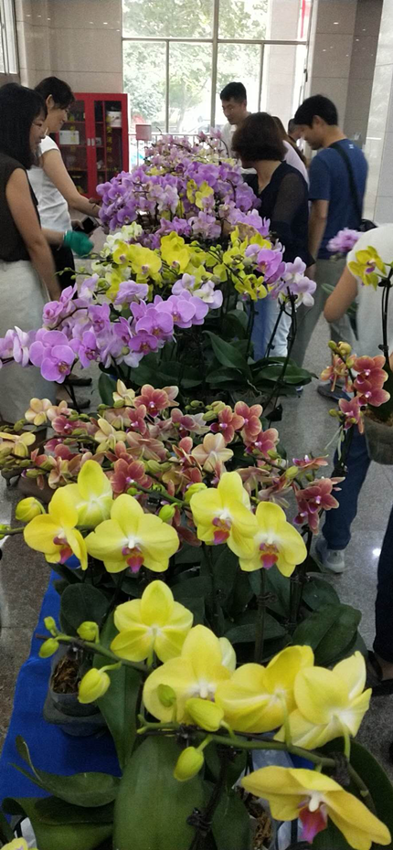 老师们分批有序地来到活动现场,一边拍照赏花、一边挑选自己喜爱的花色,活动现场气氛热烈,簇簇鲜花中,充满了老师们的欢声笑语。很多老师相继在微信朋友圈晒出自己喜爱的蝴蝶兰花。