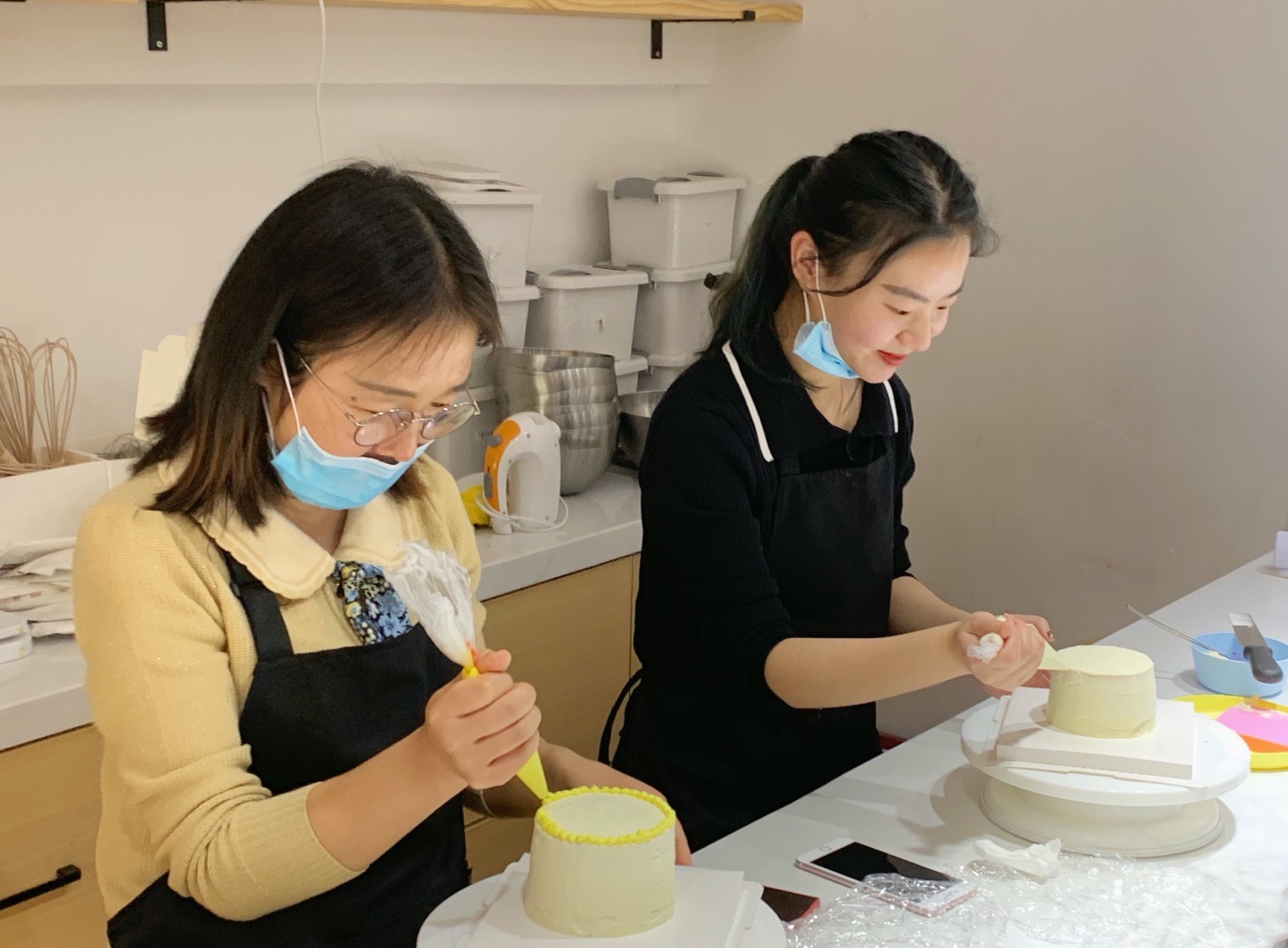 在干净整洁、设施完备的烘焙教室里,女教工们专心致志,在认真听取烘焙老师的专业讲解之后,按照老师的指引认真完成每一个制作细节,从原材料准备、蛋糕制作到选择图案,烘焙教室中始终洋溢着欢声笑语。女教职工们充分发挥了各自的创作才能和手绘天赋,利用各类装饰物品对蛋糕进行精心装饰。在大家认真的制作下,一个个精美的蛋糕新鲜出炉。