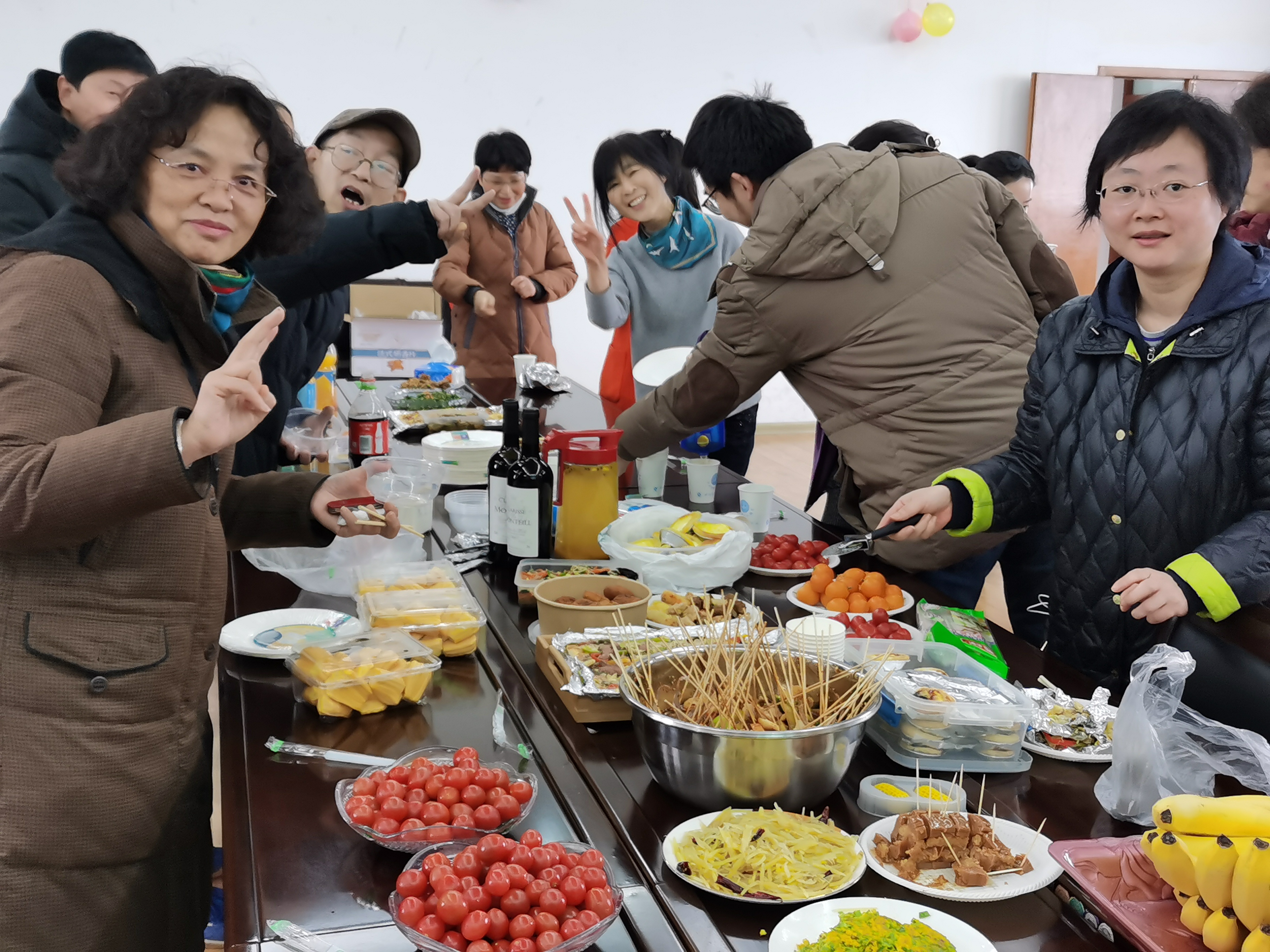 3月9日下午2点半,外国语学院工会在教学楼7楼报告厅举办庆“三八”厨艺展示活动。女教工们精心制作的菜肴甜品,经过精心装扮摆盘,一道道色香味俱全的菜品,糕点和甜点都一一展示在大家面前。活动吸引了众多教职工到场。女职工大展身手,男职工则当起了美食品鉴官。一道道充满创意、精美别致的菜品,色香味俱全,受到了大家的一致好评。摆放整齐的凉糕、蛋挞软糯香甜、金黄的韭菜盒子小巧可爱,东北酸菜排骨香气四溢,红白绿三色搭配的青菜丸子汤带来阵阵春天的气息;还有美味的披萨、炸鸡腿、麻辣烫、各种凉拌菜……简直让人目不暇接。