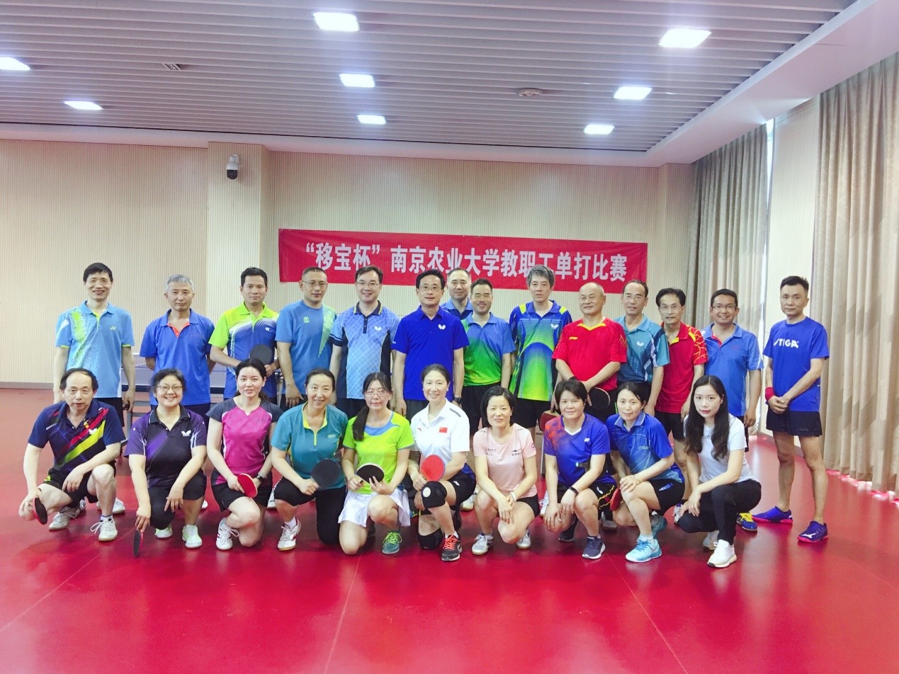 为丰富我校教职工业余生活、增进乒乓球爱好者交流和技术水平。2021年5月22日,南京农业大学乒乓球协会在校体育中心乒乓球馆成功举办“移宝杯”南京农业大学教职工单打比赛,此次比赛奖金由南京移宝网络科技有限公司赞助。共计24名选手参加了本次比赛,女子单打为单循环赛制,男子单打采用预赛抽签分组循环、及复赛淘汰赛制。