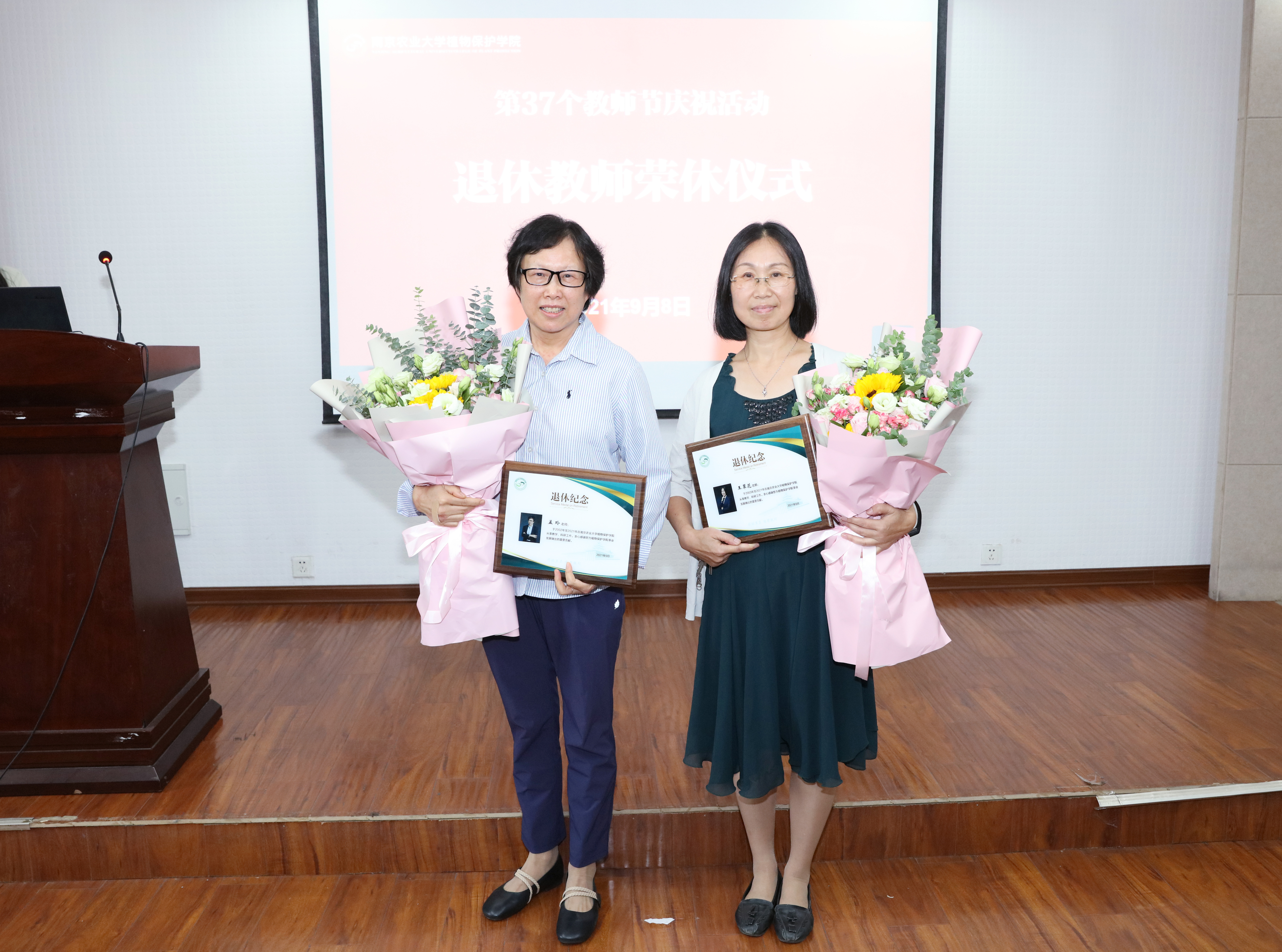 活动结束前工会为新退休教师赠送鲜花以感谢两位老师多年来兢兢业业在本职岗位上作出的重要贡献,祝贺两位老师光荣退休。