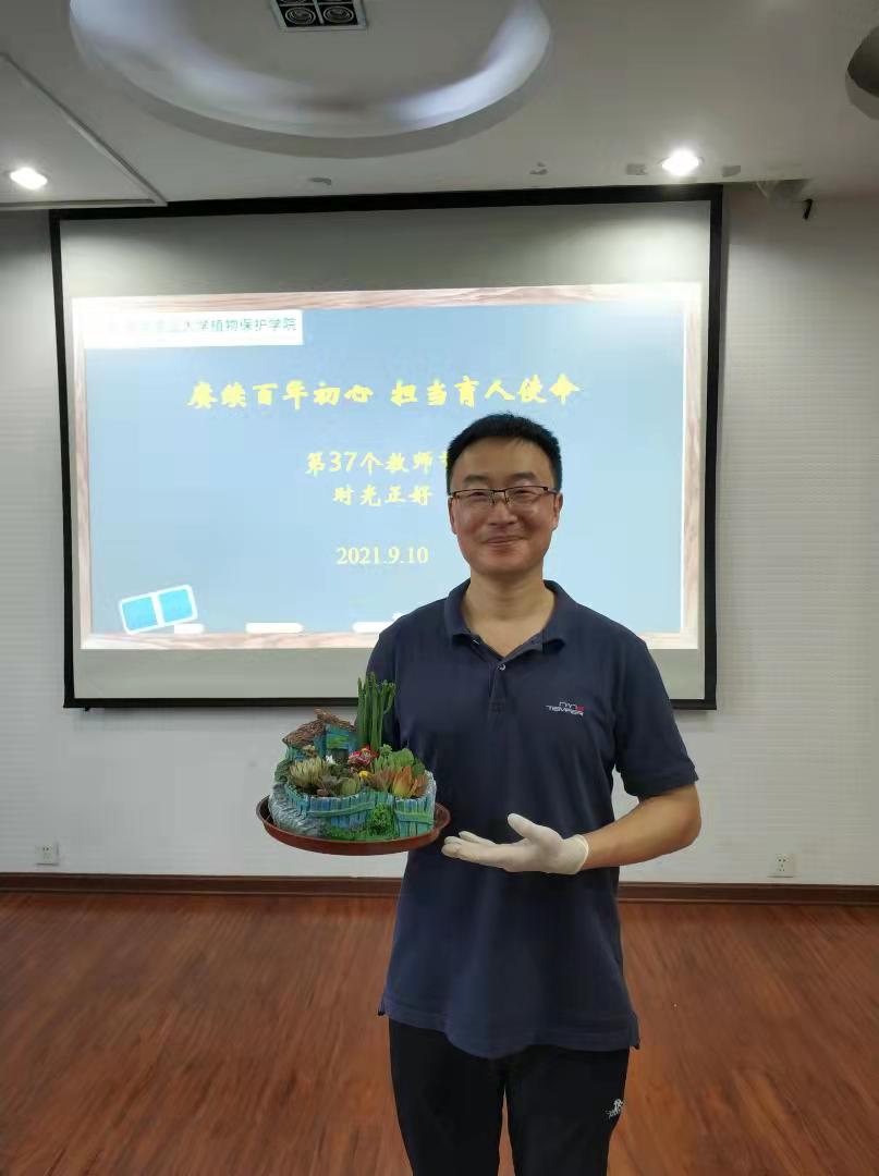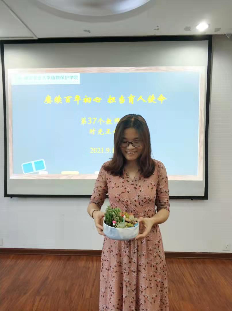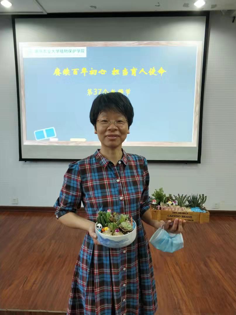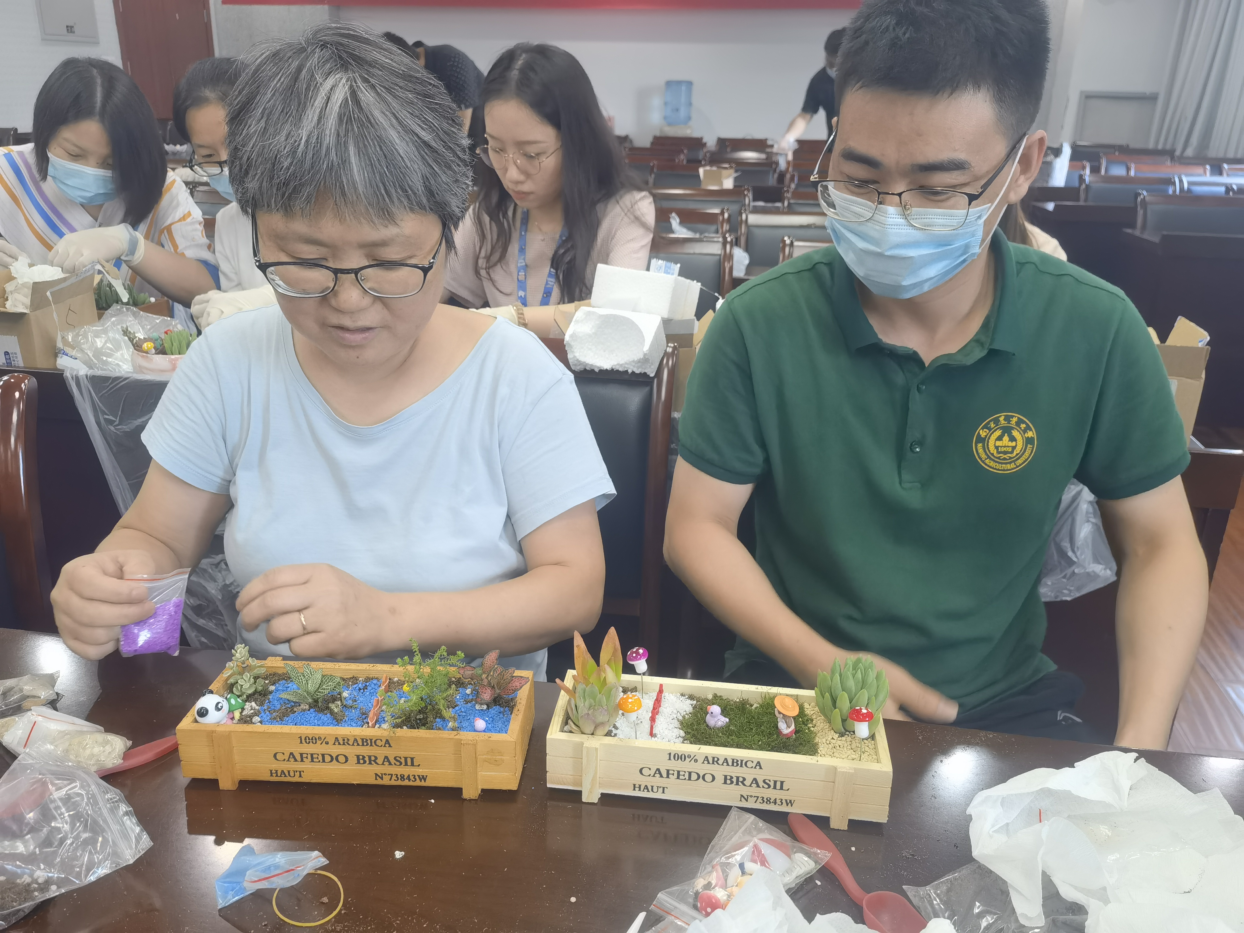 活动前,我们为老师拍摄了来自研究生的节日祝福视频。活动中,老师们精心构思,选择喜爱的植物,配上漂亮的花盆,从摆盆,放土,放多肉,撒装饰彩石,搭配小摆件……创造属于自己的缤纷荟萃多肉的世界。在种植过程中,老师们彼此交流多肉植物种植的小技巧,以及养护的注意事项。活动受疫情影响,部分教职工将多肉植物带回办公室进行种植,完成多肉盆栽后拍照向彼此分享了各自的成品。