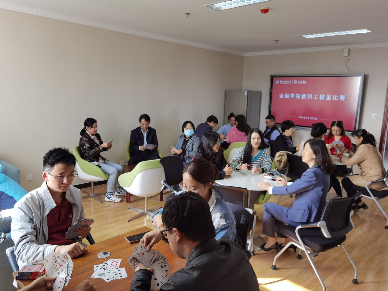 为丰富教职工生活,2021年11月3日下午,金融学院工会在第三实验教学楼1301举办了教职工掼蛋比赛。教职工们积极参与,踊跃报名,本次活动共有12支队伍参加比赛。大家在切磋牌技的同时,增进了彼此的交流和友谊。