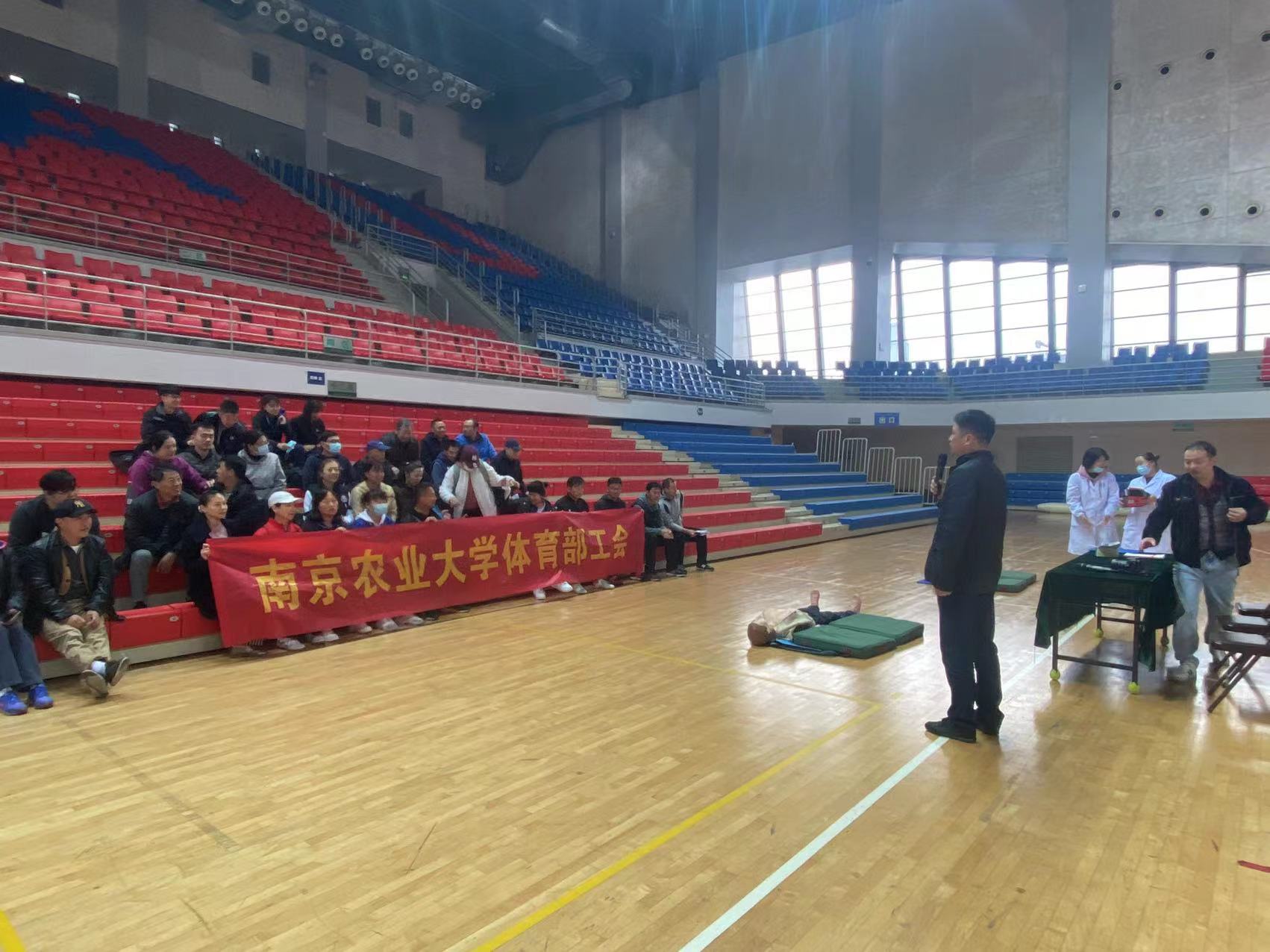 11月17日下午,体育部工会在教学部的帮助下,邀请校医院的医生为体育部全体教职员工进行AED急救实践体验活动。