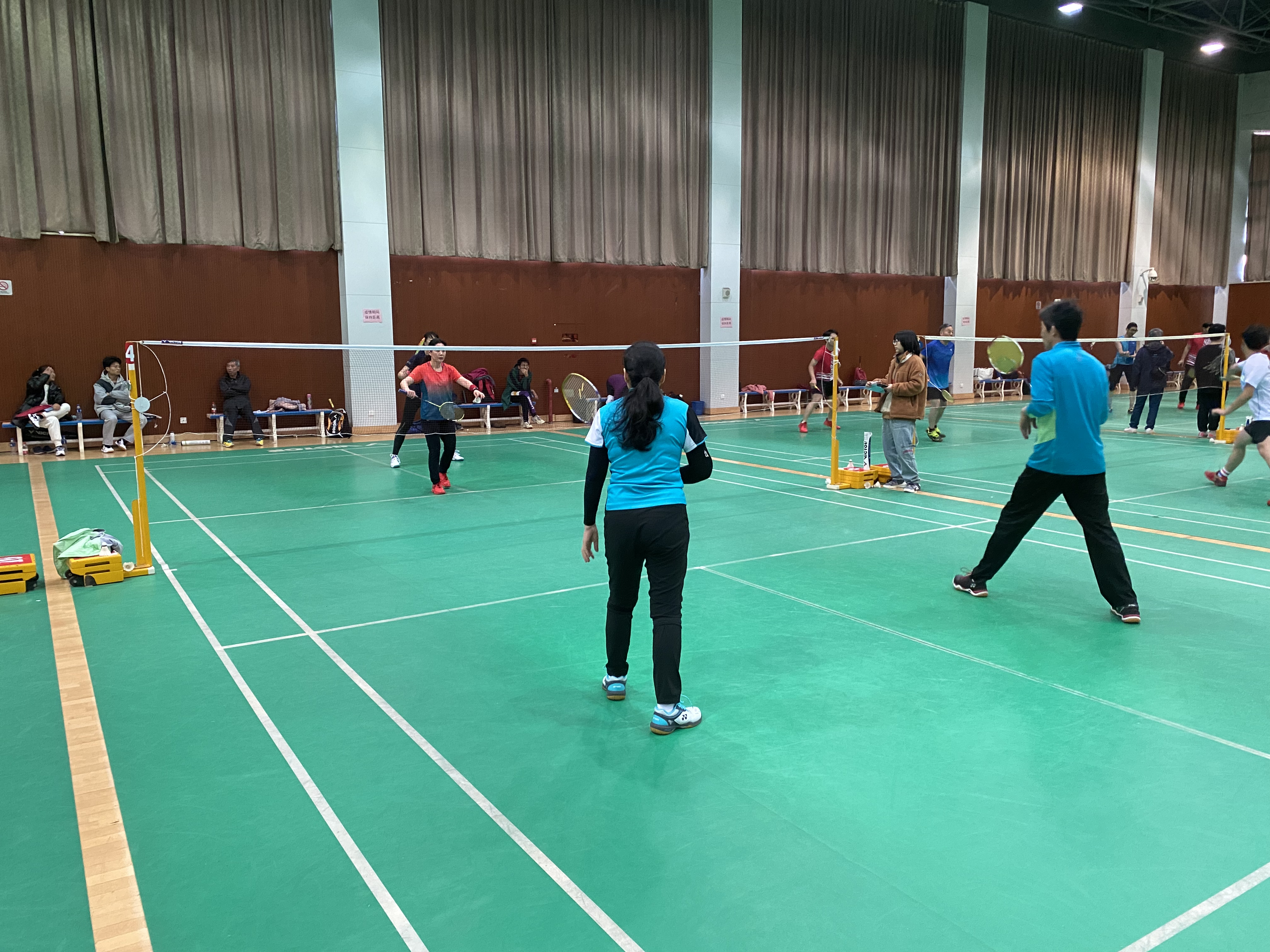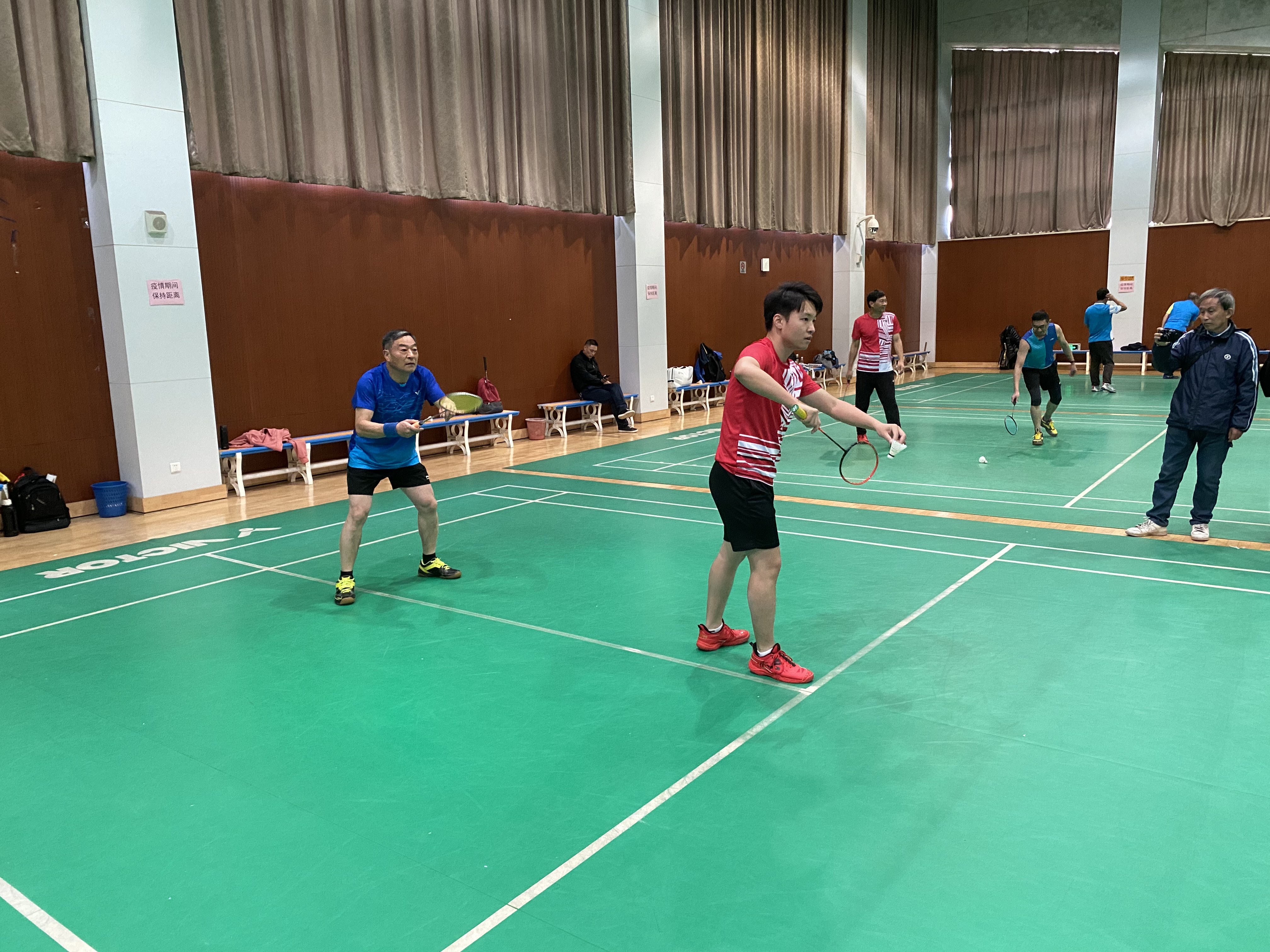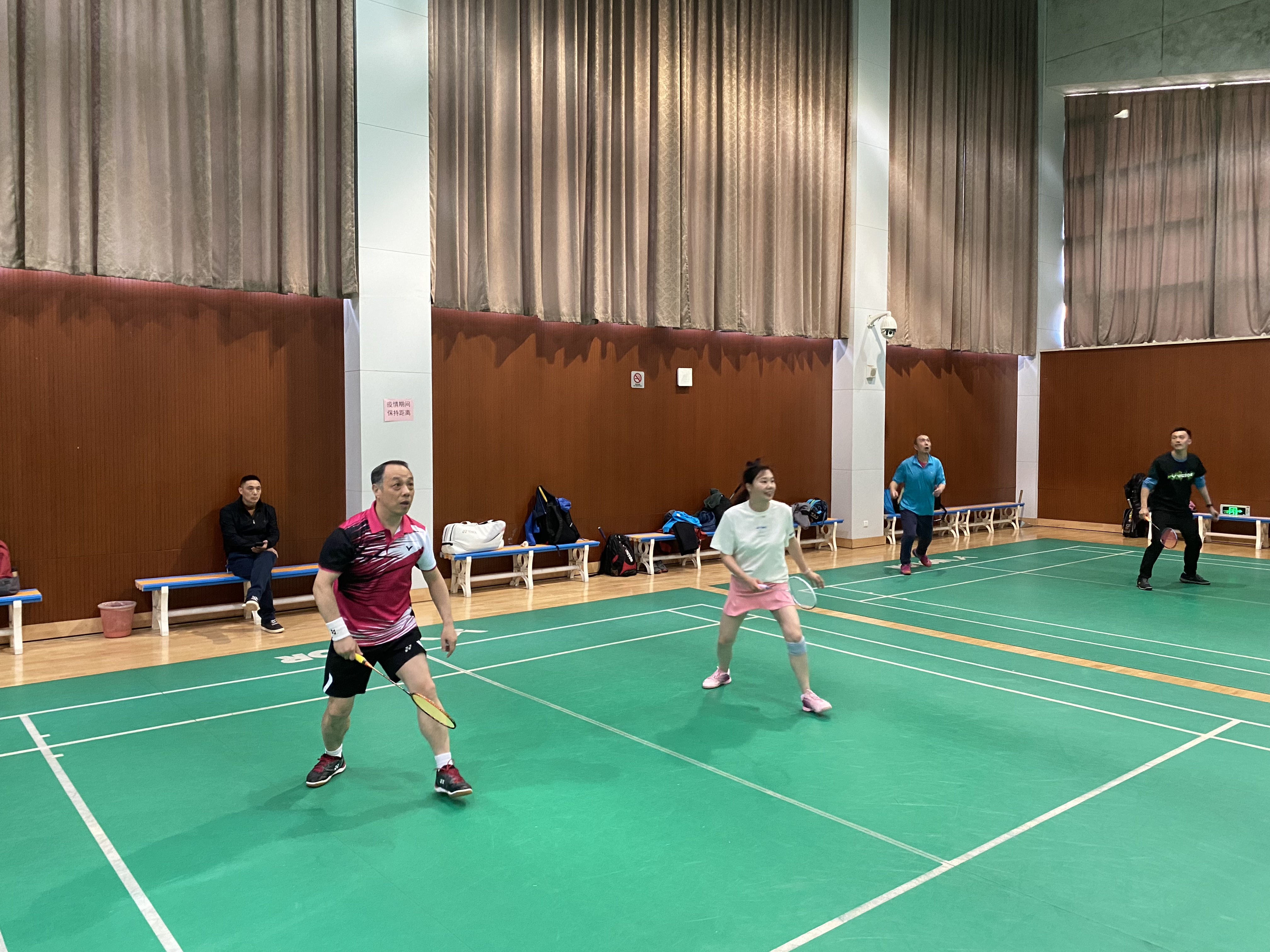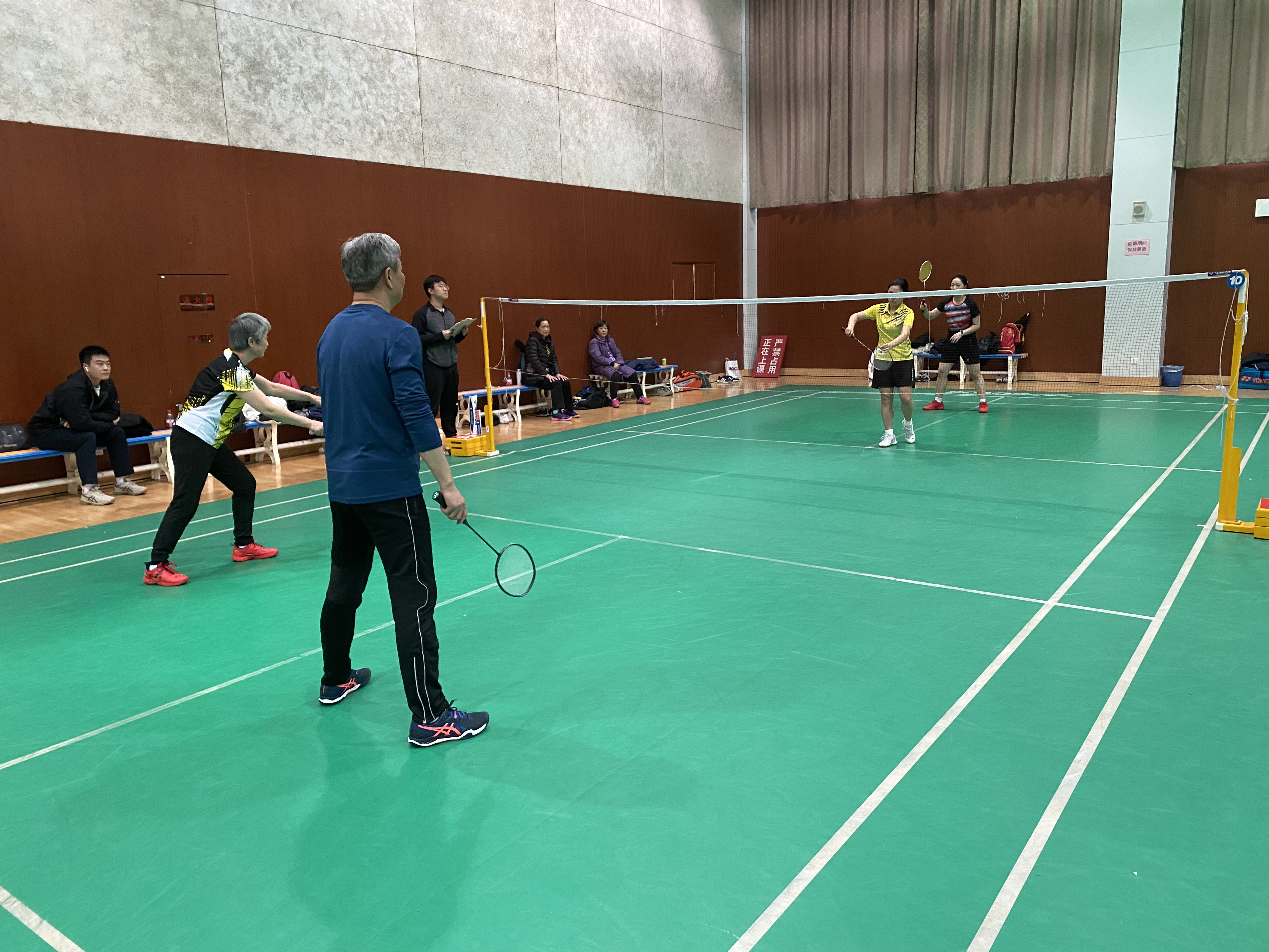 比赛过程中,各位参赛人员秉着“友谊第一,比赛第二”的精神开始了激烈的角逐,整场比赛的氛围都是轻松愉快的,但也不乏精彩十足的好球,参赛的老师们、同学们英姿飒爽,全身心的投入到比赛之中,一展运动风采。有的老师已是满头白发,但是对于运动的热爱一点都不输与年轻人,他们在比赛的过程中享受着运动所带来的快乐,表达着对于羽毛球的热爱。每位参赛人员,无论是老师还是学生都将自己融入到了比赛的气氛之中,一声声呐喊,一颗颗好球,一阵阵鼓掌都在释放着每位参赛人员对这项运动的热情,即使已是寒冬,但激情的汗水还是在不停地挥洒在球场上。此外,裁判也是比赛中不可或缺的一部分,他们由学生担任,对比赛的规则都十分了解,为比赛公平公正的进行提供了保障。