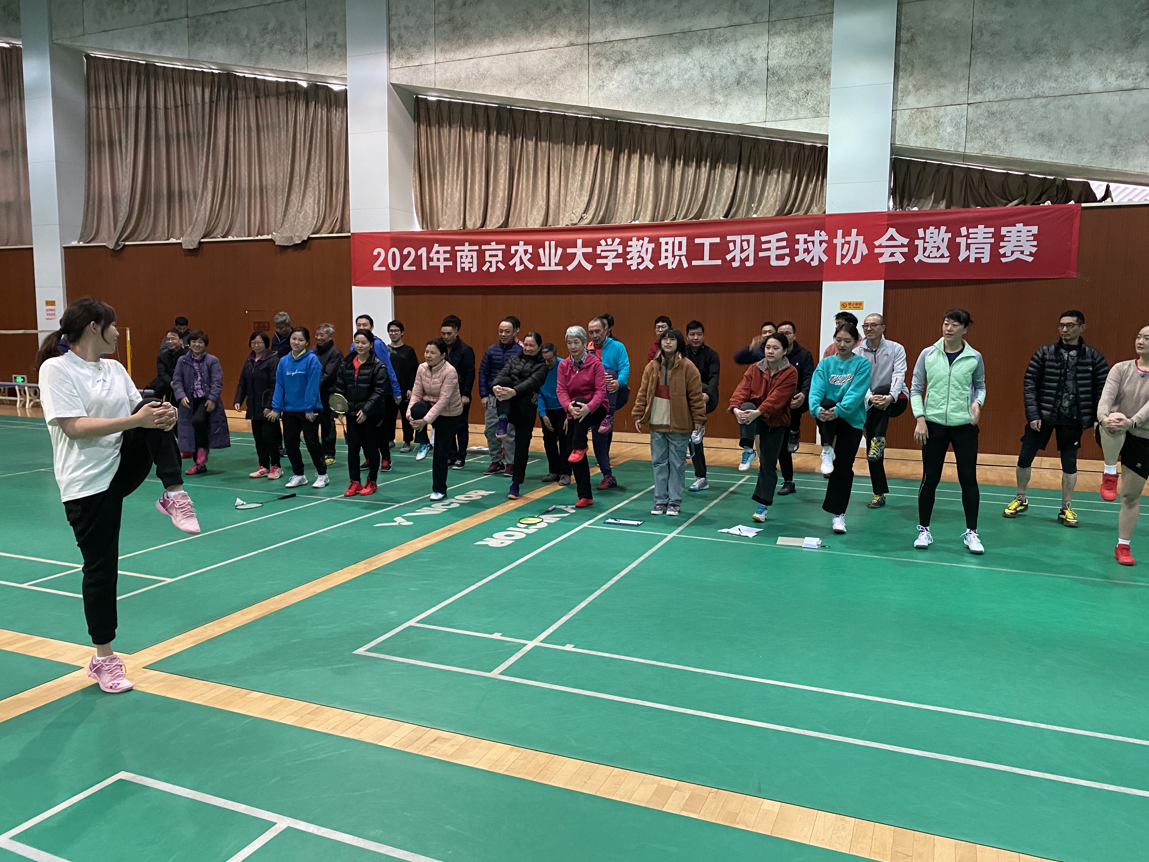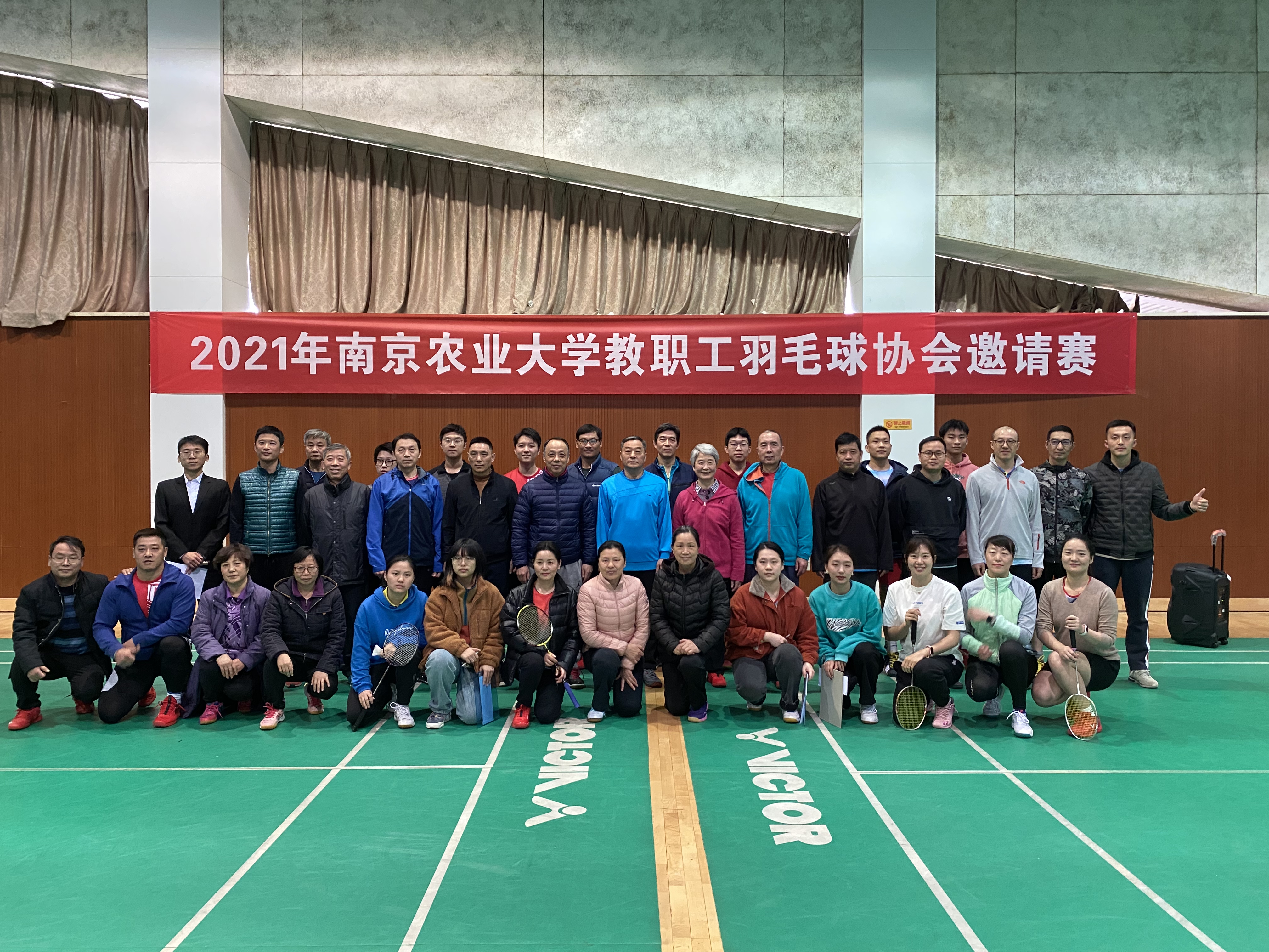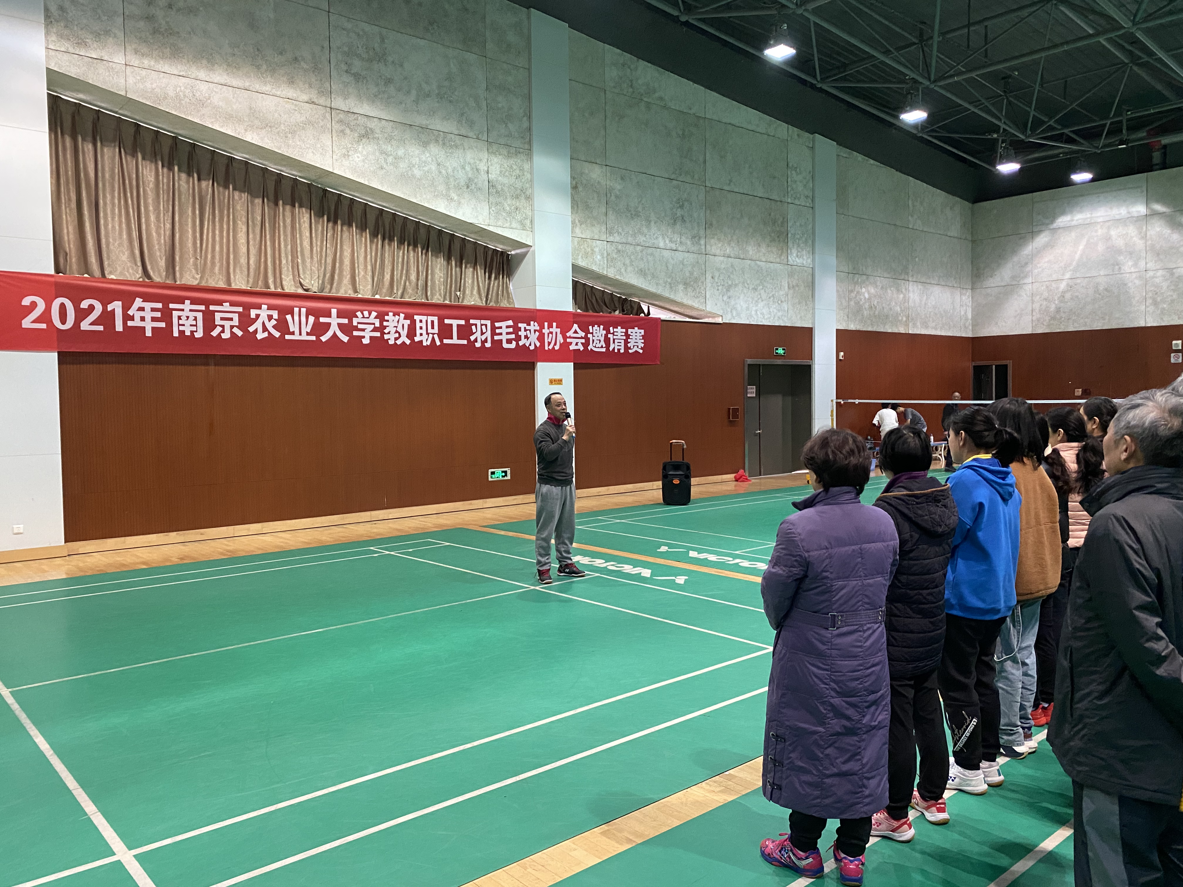 12月4日下午三时,在南京农业大学工会的大力支持下,由南京农业大学教职工羽毛球协会主办、南京农业大学体育部协办的2021年南京农业大学教职工羽毛球协会邀请赛正式在体育中心羽毛球馆举行。