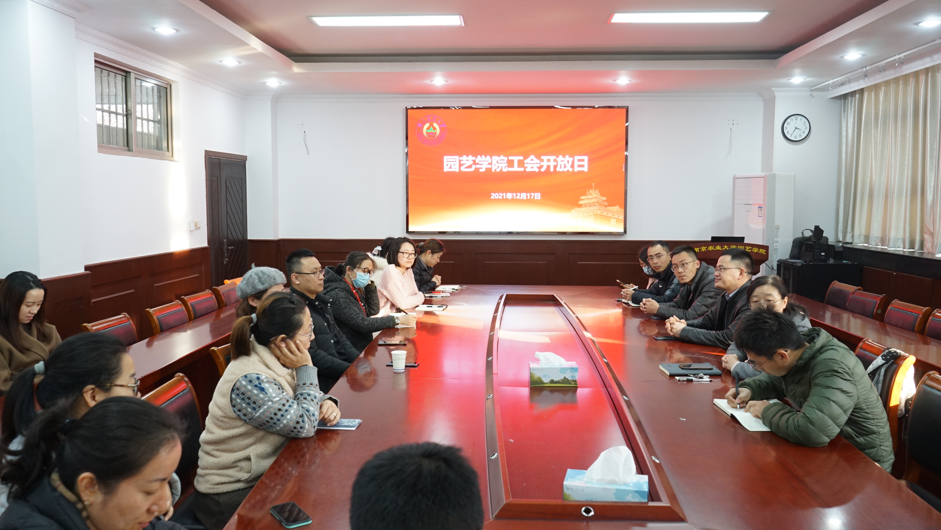 园艺学院工会致力于服务学院教职员工,充分发挥工会凝心聚力作用。为更好地服务教职员工,提高工会工作水平,学院工会于2021年12月17日下午,在生科楼B4003举办工会开放日活动。活动邀请学院党委书记韩键、党委副书记文习成、全体工会委员以及学院工会会员代表参加,活动由工会主席唐晓清主持。本次活动主要收集教职工对学院工会工作的意见与建议,发现和解决教职工们工作生活困难,持续优化工会服务水平。