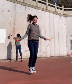 此次跳绳比赛创新采用“云”方式进行。所有参赛老师将自己的跳绳情况录制成1分钟真实视频作为成绩依据参加比赛。视频里,试验田边、操场上、走廊间、客厅中、公园里,处处舞动着老师们的身影,有的并脚跳,有的双脚跳,轻快的跳绳上下翻飞,传来一阵阵“呼呼”的跳绳声,让人感觉身临其境。
