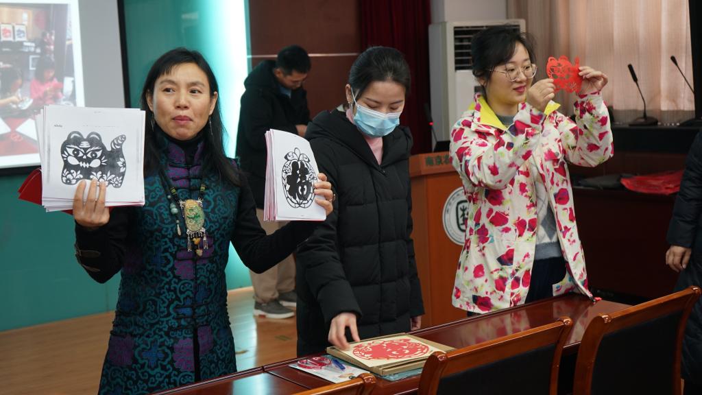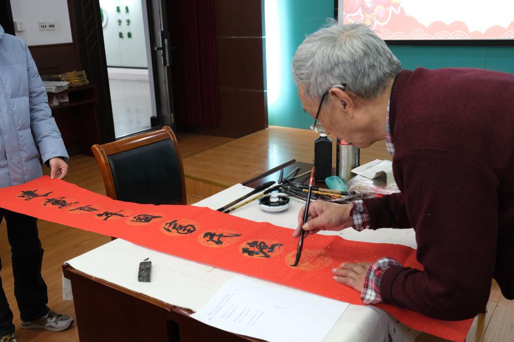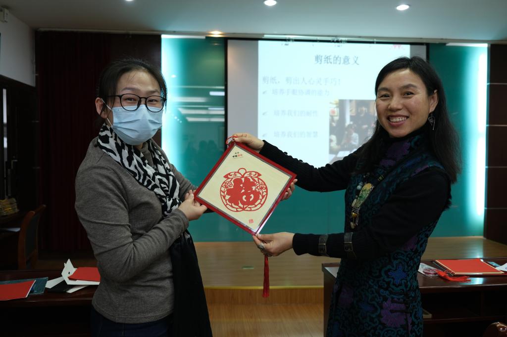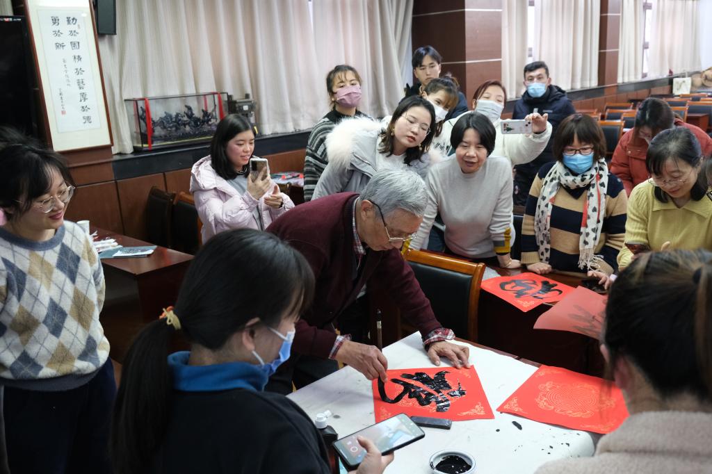 本次活动特邀学院关工委陈翔高老师、心田工坊手作导师田秀琴老师和宋玉老师来教大家写春联、剪窗花。