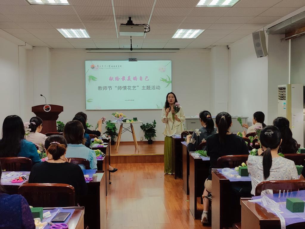 2022年9月10日是我国第38个教师节。为进一步展现动物医学院教师爱党爱国、立德树人、自信自强的精神风貌,以实际行动和良好的精神风貌迎接党的二十大胜利召开、南农120周年校庆、兽医百年院庆,动医工会于2022年9月9日下午2:30在逸夫楼3044开展动物医学院教师节插花活动,让老师们用自己的巧手和智慧,感受插花艺术的魅力,享受花艺花道带来的幸福,美化心灵,从而更好地教书育人,开展教学工作。