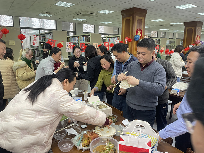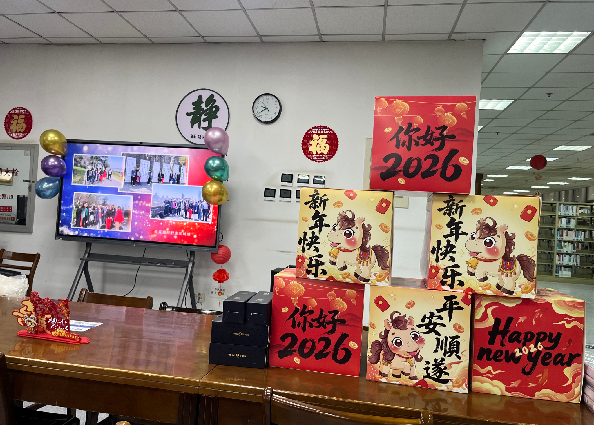 春启新章,福伴书香!为迎接2026年新春佳节,弘扬中华优秀传统文化,进一步增进图书馆(文化遗产部)全体职工的凝聚力与归属感,营造温馨和谐、积极向上的团队氛围,1月26日(农历腊月初八,星期一),图书馆(文化遗产部)“同心共飨·协同共进”迎新春联欢活动在卫岗校区图书馆第一借阅室(北三楼)圆满举办。