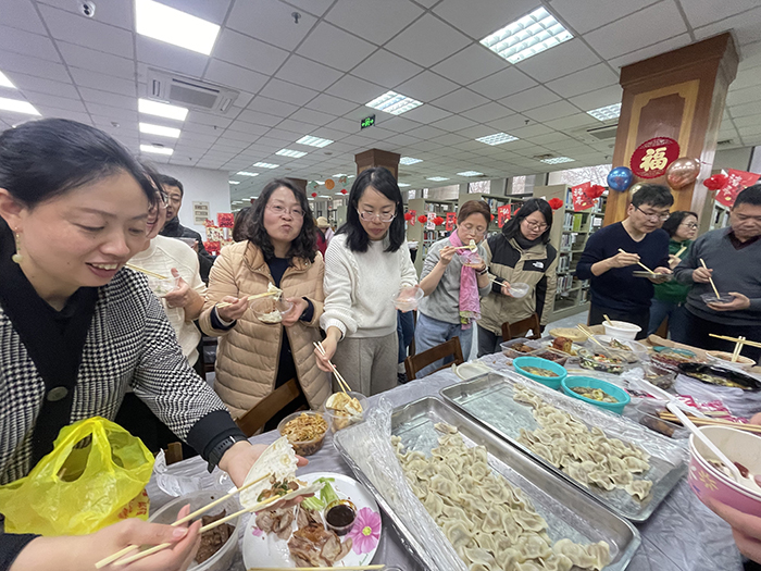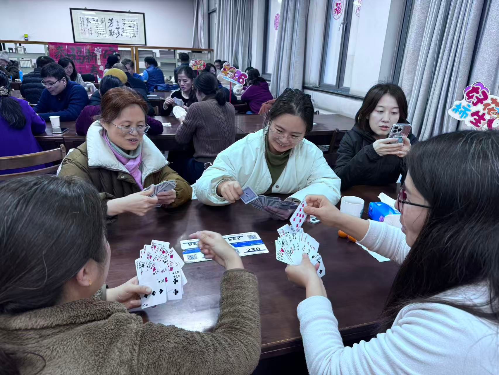 部门全体会员齐聚一堂,以百家宴品年味、以棋牌赛聚情谊,共迎新春佳节的到来。本次联欢活动精心策划、形式新颖,融合“同心共飨·新春百家宴”与“协同共进·淮安跑得快”扑克牌比赛两大环节,既兼具烟火气息与节日温情,又充分展现了全体馆员团结协作、积极向上的精神风貌。