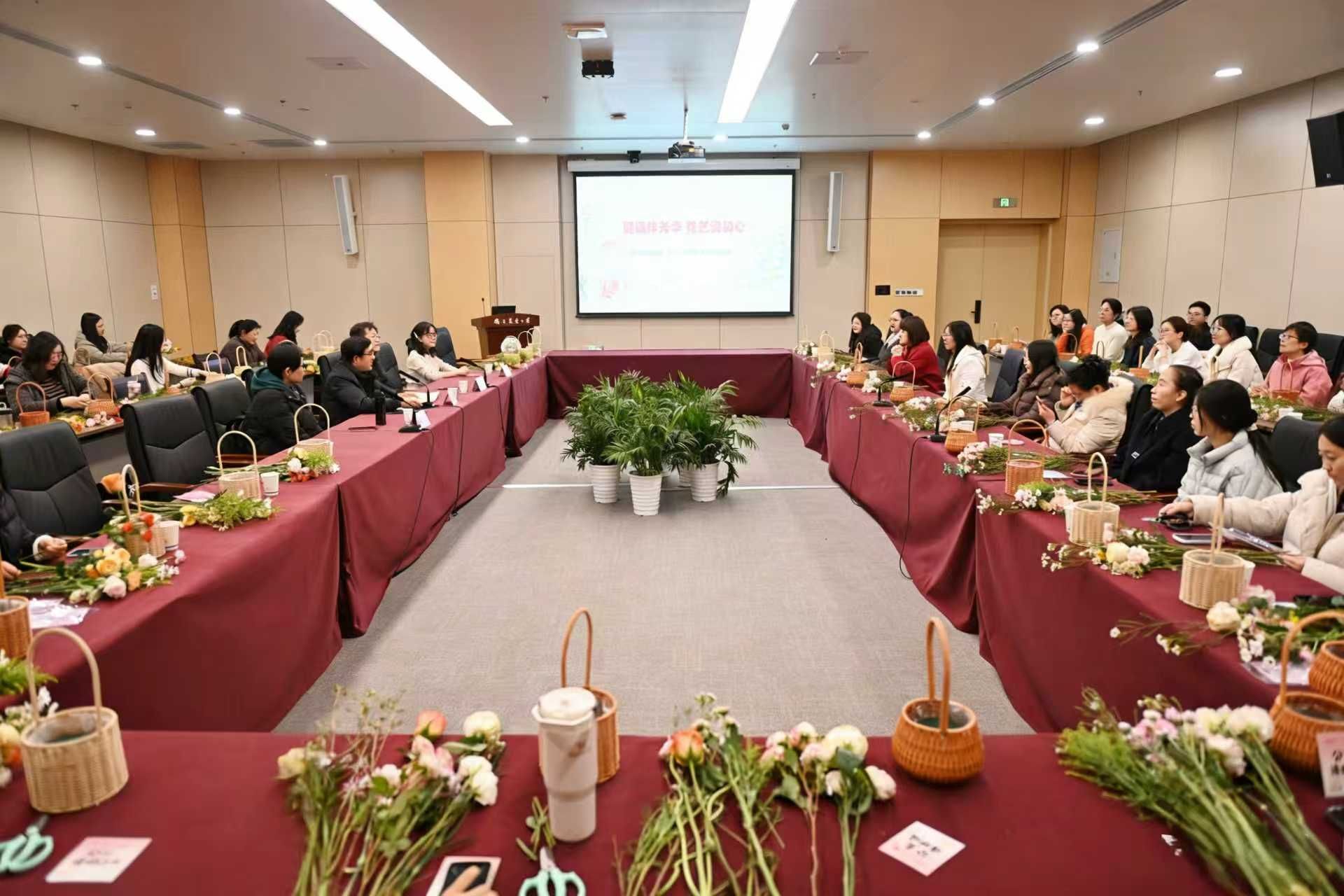 3月6日上午,在第116个“三八”国际妇女节来临之际,机关党委、机关工会开展了以“健康伴芳华 花艺润初心”为主题的系列活动。党委办公室主任、统战部部长、机关党委书记朱筱玉,党委组织部部长刘亮出席活动,与机关女教师齐聚一堂,在温馨氛围中欢度节日。