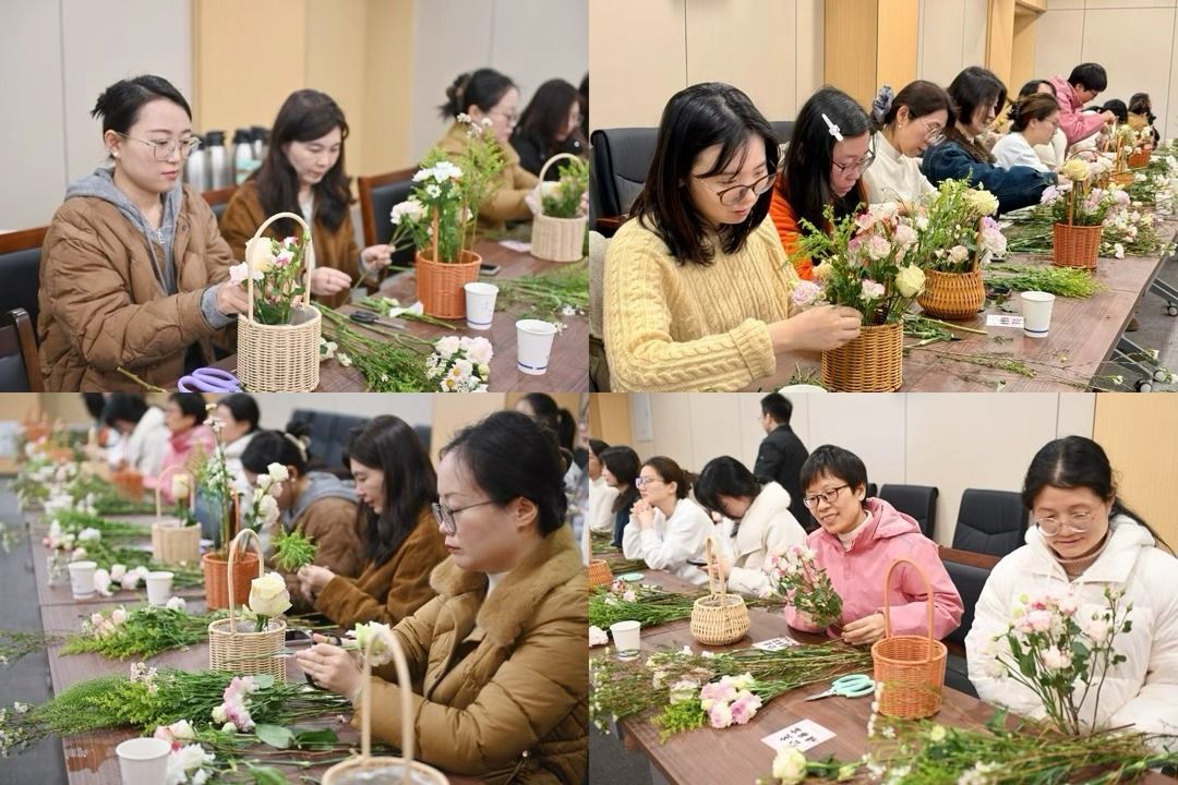 活动邀请了校医院金巾医生带来女性健康知识讲座,她围绕骨骼健康等方面展开讲述,引导大家树立正确健康理念。园艺学院博士研究生刘丽颖带来插花艺术培训,她从花材选择、色彩搭配、造型设计等方面细致讲解,让大家感受到插花艺术的美学魅力。在插花体验环节,女教师们发挥创意,修剪花枝、搭配造型,亲手制作出各具特色的花艺作品,现场花香四溢、笑语盈盈,大家互相交流心得、合影留念。